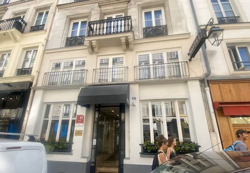 Small budget hotel on the south edge of Marais district, near cafes and bakery. 7-minute walk to City Hall (Hotel de Ville) or Place des Vosges, 18-minute walk to Notre Dame. 4-minute walk to "Saint-Paul" or "Bastille" metro station. 29 compact rooms (single, double, or triples) with street or courtyard view and free WiFi. Elevator. $18 Breakfast buffet. 24-hour front desk. Luggage storage.